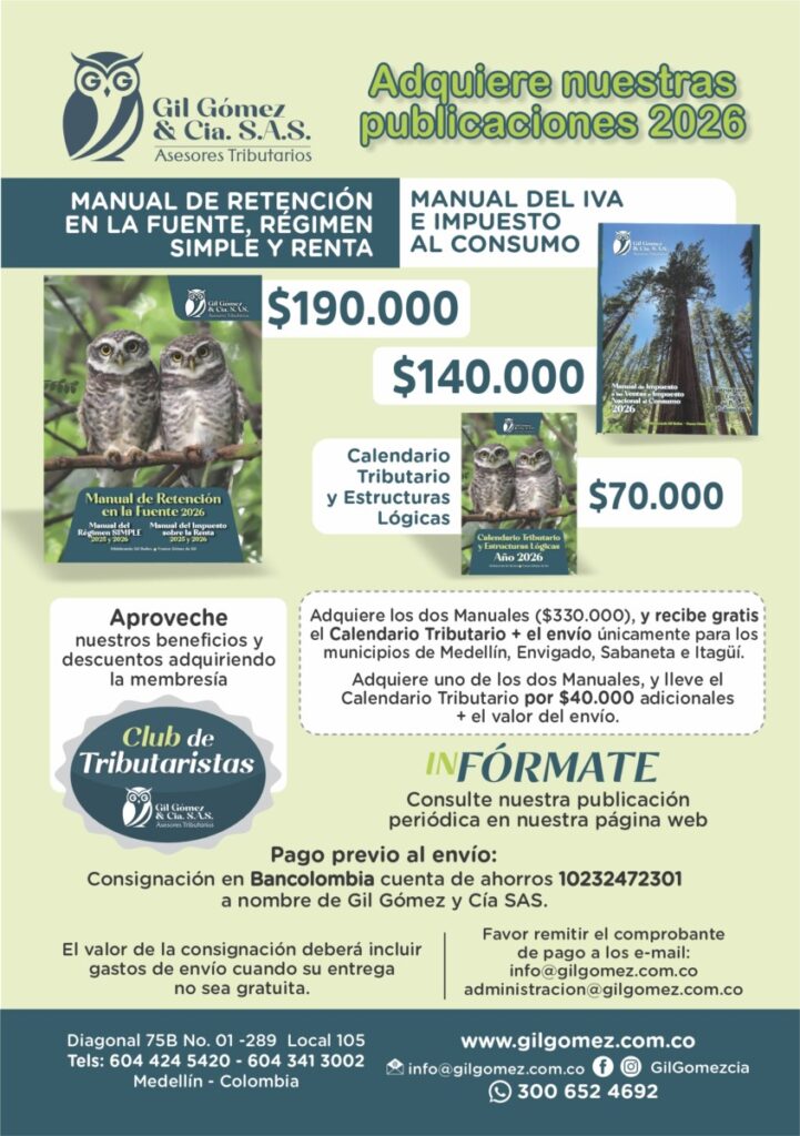 ¡Se encuentra disponible el Manual de Retención en la Fuente 2026, Manual del Régimen SIMPLE 2025 y 2026 y Manual de Impuestos sobre la Renta 2025 y 2026 -Calendario Tributario y Estructuras Lógicas 2026!